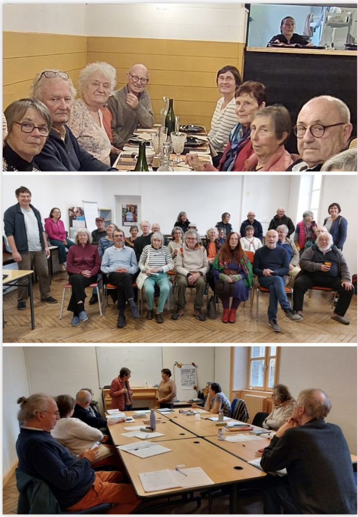 Ĉiam en bona etoso ni renkontiĝas, babilas kaj laboras dum studperiodoj en Saint-Brieuc. Anoj de Vannes proponis teatraĵon por ĉiuj dimanĉon frumatene antaŭ la kursoj. Gratulon kaj dankon al ili!